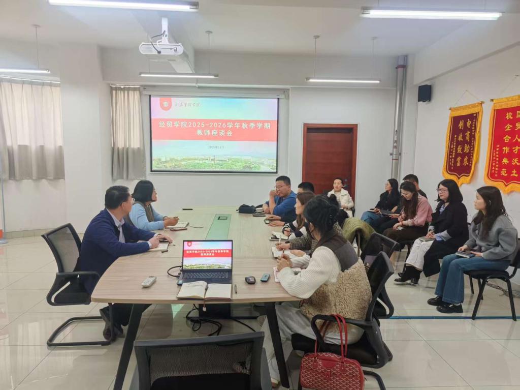 为促进学院教师间的教学交流,助力青年教师的快速成长,经贸学院于11月12日下午召开了2025-2026学年秋季学期教师座谈会。经贸学院副院长朱庄瑞、王培培出席了此次会议。学院新进教师及各系教师代表参与了座谈。