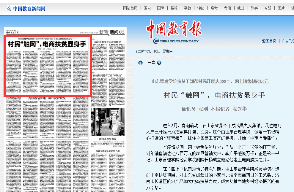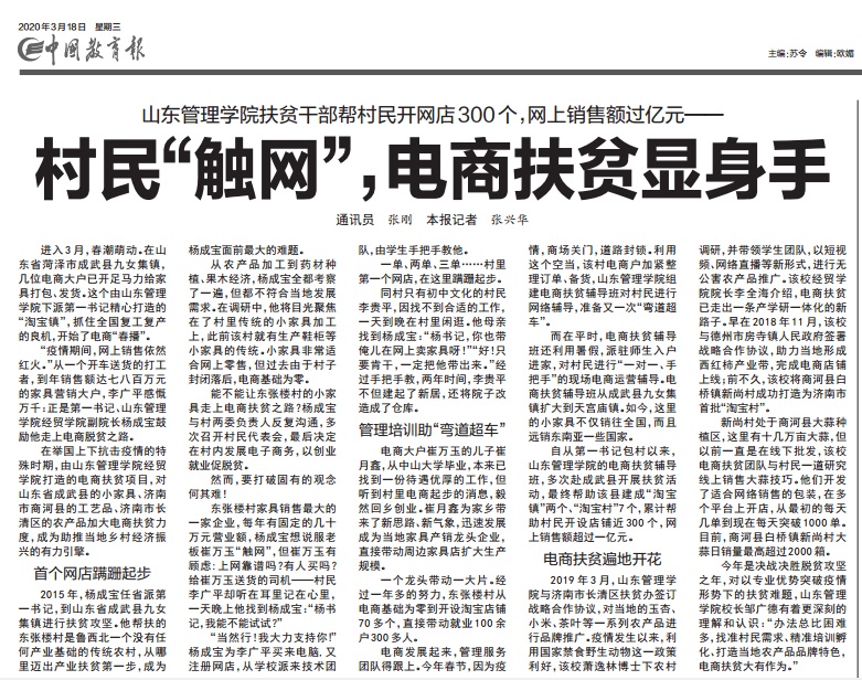 2020年3月18日,《中国教育报》对我院电商扶贫工作进行了专门报道。