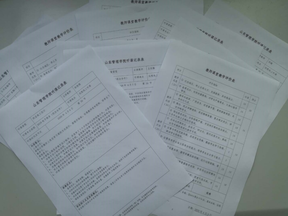 听课检查中,学院结合学校下发的教师课堂教学评价指标,除关注传统线下备课充分度、内容熟悉度、表达清晰度外,还针对疫情期间线上教学特点,围绕课程思政、网络教学资源提供、在线教学活动组织、在线课程教学设计、教学方法改革、线上师生互动和节奏控制、线上学习效果、教师对线上平台操作熟练程度等展开评价,结合各类课程的特点,形成科学合理的线上督导。